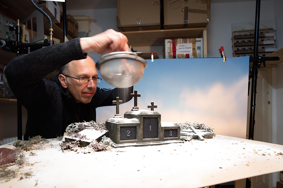 Frank Kunert (*1963 in Frankfurt am Main) absolvierte in den 1980er-Jahren eine Ausbildung zum Fotografen und widmet sich nun schon seit Langem dem Gestalten und Fotografieren seiner Miniaturmodelle im Studio. Seine Arbeiten wurden in mehreren Bildbänden publiziert (Hatje Cantz Verlag) und in zahlreichen Ausstellungen im In- und Ausland gezeigt, etwa in der FREELENS Galerie in Hamburg, im Museum of Arts and Design in New York und bei La Chambre in Straßburg. Frank Kunert erhielt einige Auszeichnungen, darunter die Silbermedaille beim Biennial Dimensional Salon in New York, der Deutsche Fotobuchpreis in Silber und der Heinrich-Zille-Karikaturenpreis.