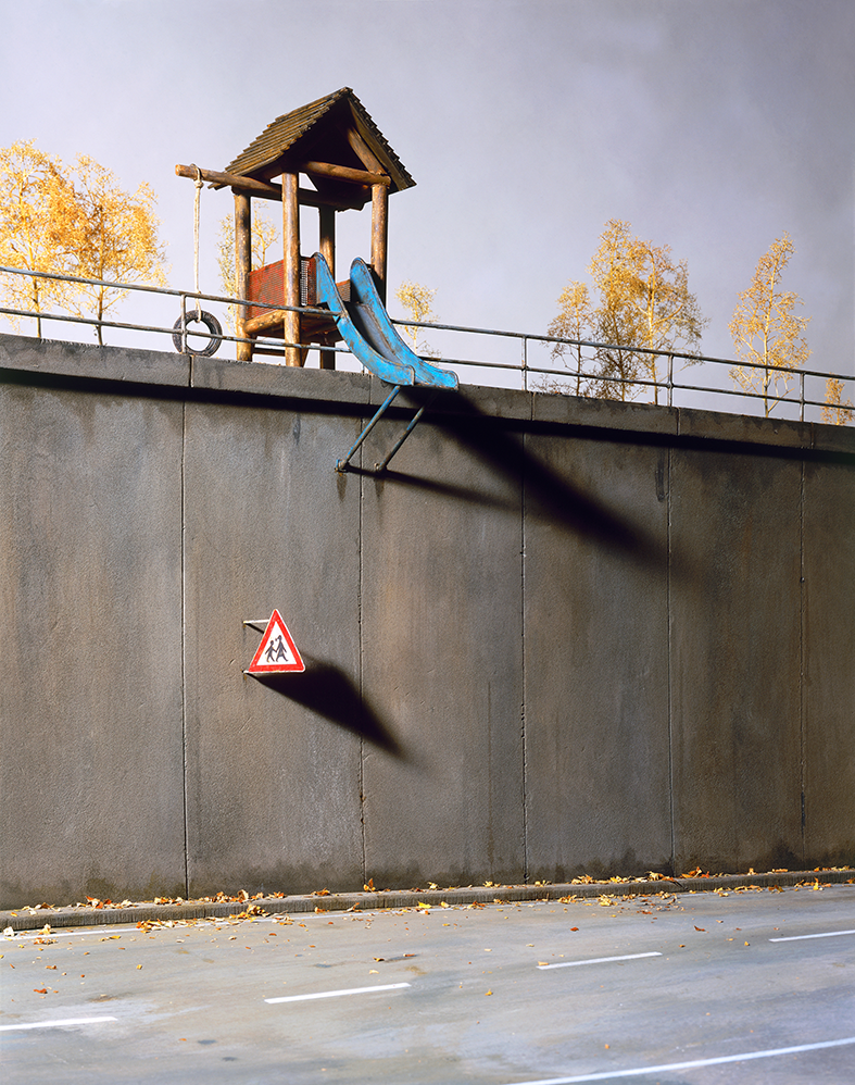 In seinem Wunderland offenbart der Fotograf und Modellbauer Frank Kunert die Widersprüche unseres Daseins – zwischen Höhenflug und drohendem Abgrund. Hierfür nutzt er eigens für die Fotografien gebaute Miniaturkulissen. Die Architektur, die uns im Alltag umgibt, dient dabei als Metapher für die Wiedergabe unserer Träume und Ängste, unseres Umgangs miteinander, manch skurriler Lösung von Problemen, der Vergänglichkeit und des Scheiterns. Tragik und Komik gehen dabei stets Hand in Hand. Bei der Entstehung der Modelle für seine Motivwelten tastet sich Frank Kunert ganz langsam und in mühevoller Kleinarbeit an ein Thema heran. In der fertigen Fotografie wirken die Szenen dann oft, als hätten die Menschen den Ort gerade erst verlassen oder könnten jederzeit wieder in Erscheinung treten. Der Künstler führt uns in ein Paralleluniversum, das eine surreale Wirkung entfaltet und zugleich merkwürdig vertraut wirkt. Die Ausstellung Wunderland zeigt neben teils großformatigen Fotografien auch einige Originalmodelle.